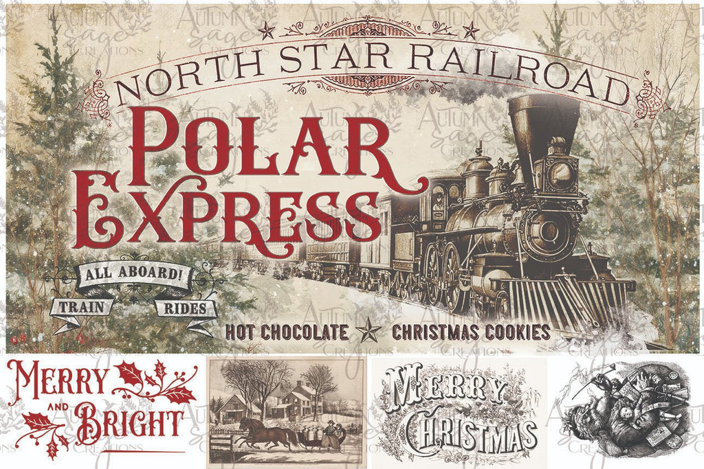 Multi project 12x18 Iconic Christmas Train image, along with four classic designs for your home decor!
