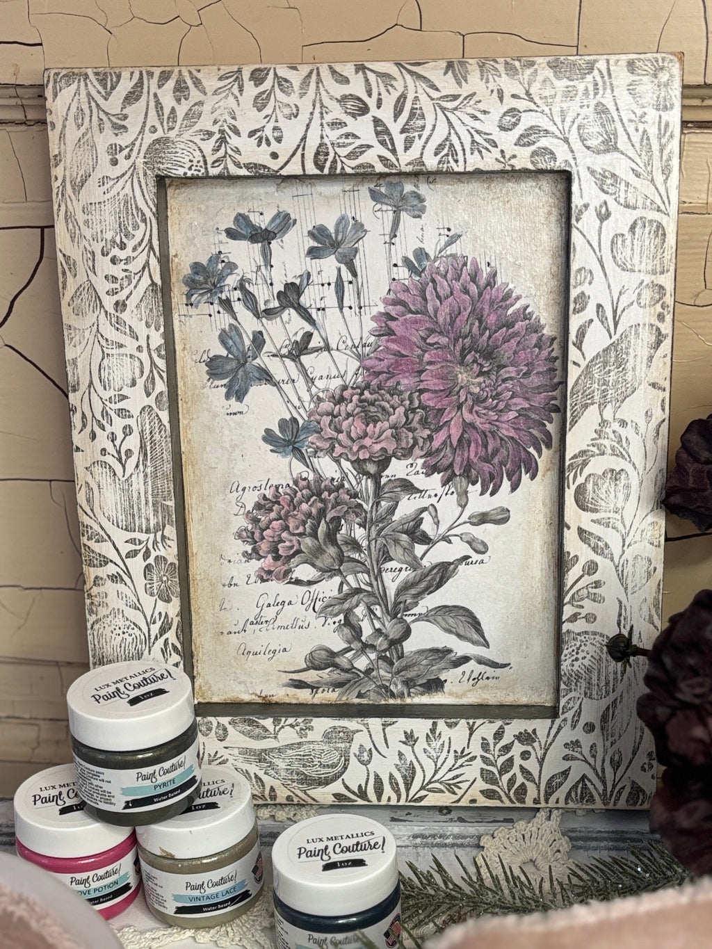 Join us Saturday, February 21st at 11am for a framed art decor workshop using IOD stamps, Roycycled decoupage paper, and Paint Couture paints.